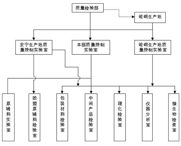 公司質量檢驗部設置本部生產地質量控制實驗室、安寧生產地和崆峒生產地分別設置獨立的質量控制實驗室。各生產地質量控制負責人依據公司《藥品質量受權人、轉受權人管理程序》承擔相應職責,質量控制人員依據公司《藥品控制人員職責標準》承擔各生產地質量控制工作。質量控制體系圖見下: